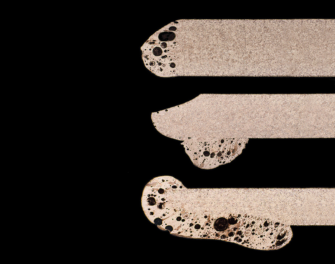 The bottom wire exhibits two very different shaped ends due to metal loss.