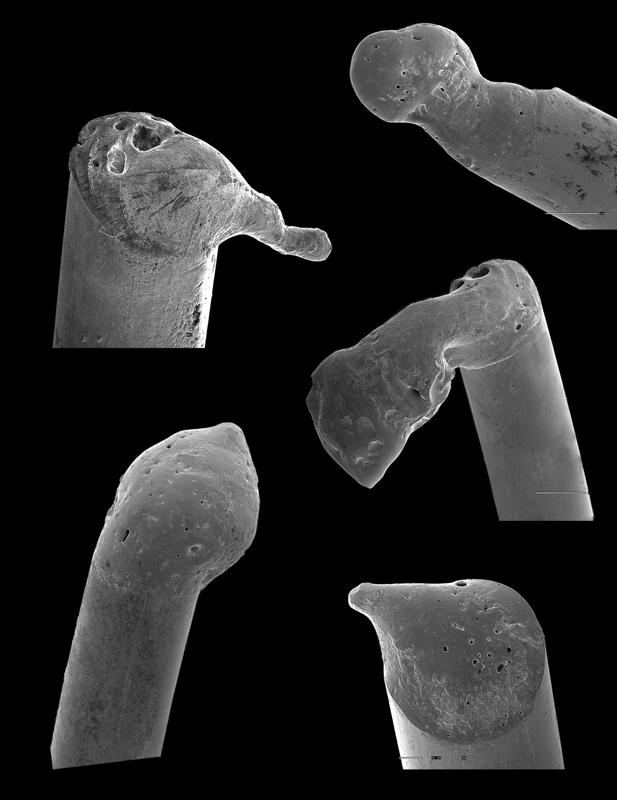 Arc beads can take many shapes. They always, however, show a sharp demarcation between the bead and the cylindrical wire.